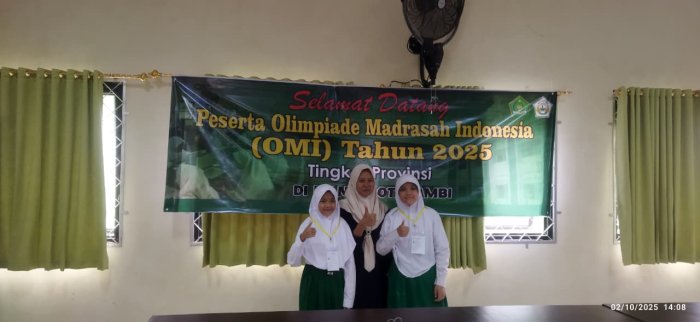 Pada Kamis, 2 Oktober 2025, Fairuz Radhitya Gumantina dan Keyla Alifa Nur Ihsan mewakili Kota Jambi dalam ajang Olimpiade Madrasah Indonesia (OMI) Tingkat Provinsi. Kedua siswa tersebut berkompetisi di bidang Ilmu Pengetahuan Alam dan Sosial (IPAS) Terintegrasi.