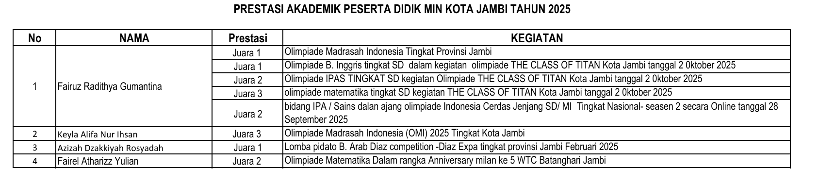 Data Prestasi Siswa